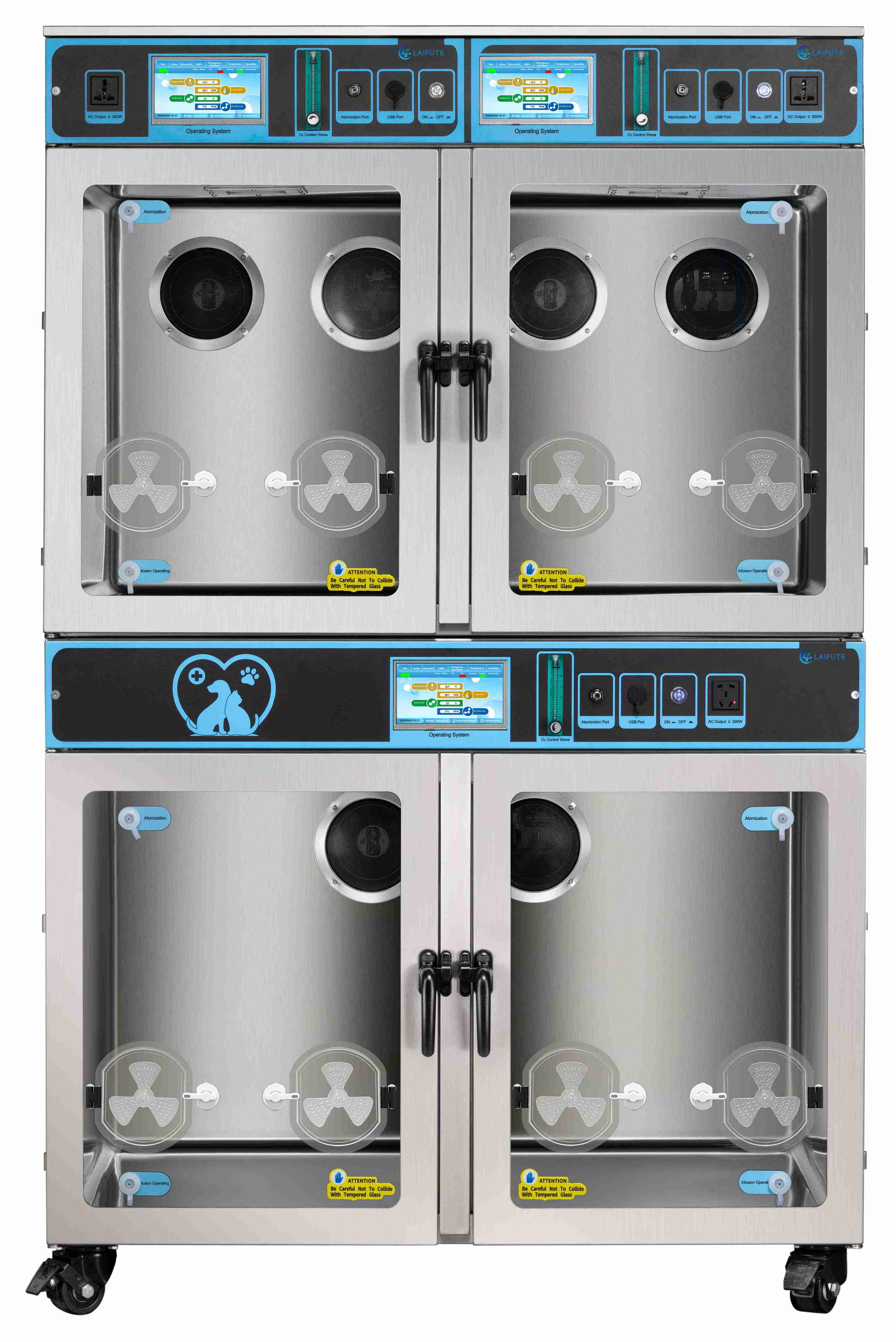 O design de pilha dupla é prático. Em nossa sala de tratamento, temos cerca de seis metros quadrados de área útil. Uma pegada me dá duas câmaras controladas de forma independente. Na semana passada, tive um surto de asma felina na câmara superior – 40% de oxigênio, umidade ambiente – e um gato odontológico pós-operatório com um leve problema de recuperação na câmara inferior com 30% de oxigênio e uma temperatura ligeiramente mais quente. Ambos conseguiram sem interferir um no outro, sem ocupar metade da ala. Esse tipo de flexibilidade é o que torna os sistemas de suporte de vida Pet ICU tão essenciais em uma clínica movimentada.